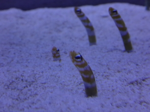 令和6年4月 チンアナゴを展示しました。チンアナゴの仲間は砂を掘って作った穴の中で生活をしています。急にのぞきこむと穴の中に隠れてしまうので、観察するときはジッと水槽の前でご覧ください。本館1階で、展示しています。