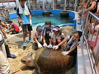令和7年8月 オータムスクールの参加者を募集します。水族館で飼育係の仕事やウミガメの甲羅のお掃除を体験してみませんか?募集情報のページをご覧ください。※すでに締め切りました。
