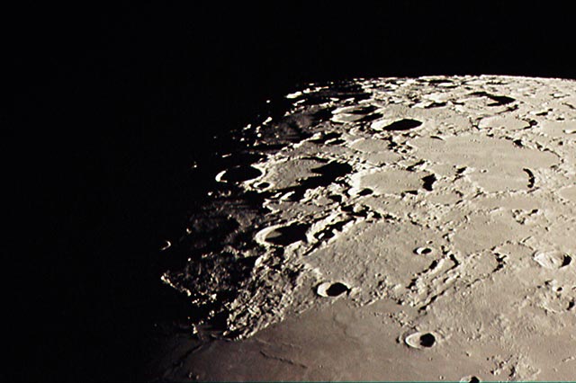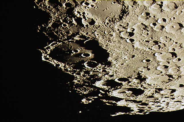 中央の大きなクレーターがクラビウス(直径225km)です。クレーターの壁の上にはポーター(直径52km)とラザフォード(直径54km)という2つのクレーターがあって、生き物の顔のようにも見えます。