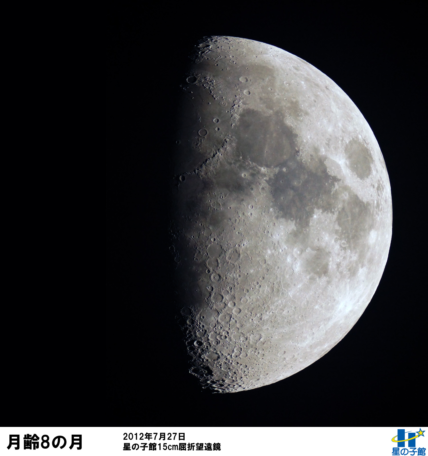 月齢8の月は、月の左側にある海の部分がだんだん見えてくる時期です。