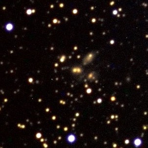 ぺガスス座にある系外銀河NGC7317-20です。銀河が集まっていることを最初に見つけた人の名前をつけて「ステファンの五つ子」と呼ばれています。 2006年9月19日 姫路科学館15cm屈折望遠鏡+冷却CCD こちらは、90cm反射望遠鏡で撮影した中心部です。 2006年9月23日 姫路科学館90cm反射望遠鏡+冷却CCD