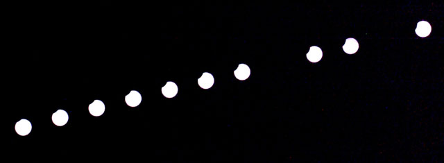 11時から5分おきの日食の連続写真です(抜けているところはくもりです)