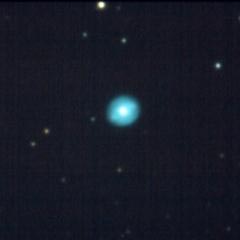 キャッツアイ星雲(NGC6543)りゅう座の黄道の北極付近にある、比較的大きな惑星状星雲です。 |