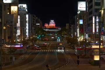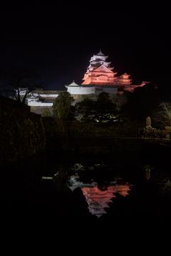 姫路城の白漆喰が最も映える白色ライトアップを日没から24時まで実施しています。