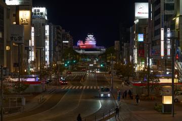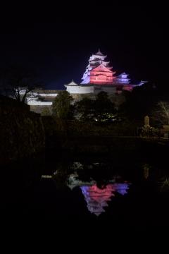 姫路城の白漆喰が最も映える白色ライトアップを日没から24時まで実施しています。