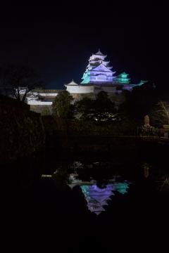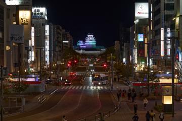 姫路城の白漆喰が最も映える白色ライトアップを日没から24時まで実施しています。