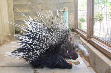 冬至の日に、ヤマアラシに縁起の良い食べ物のカボチャをプレゼントします。