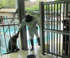 今日のイベントの説明を飼育員さんから聞いている様子です。