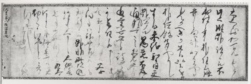 永仁6年(1298年)後伏見天皇が即位して伏見上皇の院政が始まると、同年8月伏見上皇の中宮であった藤原●子(●は、かねへんに章)に永福門院の女院号宣下があり、中宮大夫であった中院通重は解官された。11月1日付けの本文書は、官職を失った中院通重の父通頼から任官の哀願を受けた後深草上皇が、伏見上皇に意見を申し送った書状である。