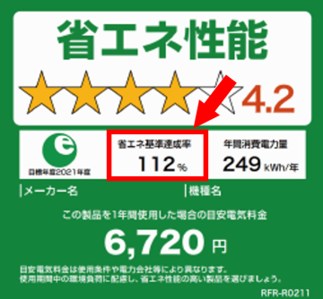 省エネ基準達成率は統一省エネラベル等に記載されています。