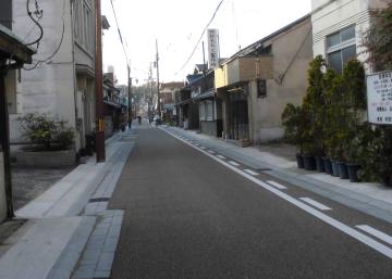 野里街道には町家などの歴史的建物が数多く残っており、その一角には、「お夏清十郎」の物語で有名な慶雲寺もあります。また、歴史的な町並みに調和する地道風の自然色舗装や、自然御影石を使用した石組側溝、景観に配慮した茶色の電柱や和風街路灯などとあわせ、歴史的な風情を与えています。