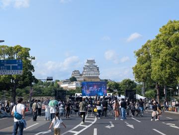 「ライオンズクラブフェスタ」と「Himeji大手前通りイルミネーション」のコラボ企画として、令和7年5月31日(土曜日)に大手前通りの一部(大手前交差点から姫路城前交差点まで)を歩行者天国にし、中学生や高校生吹奏楽部による演奏等のステージイベントや花火の打ち上げが実施されました。