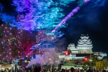世界的照明デザイナーである石井幹子氏監修のもと、実施エリア内のクスノキをフルカラーLEDで装飾し、姫路城の彩雲ライトアップと連動した統一感のある演出や万博の公式キャラクター「ミャクミャク」をイメージした赤系、青系の色彩を用いて、大阪・関西万博を応援する、他都市にはないその期間だけの特別演出を行っています。