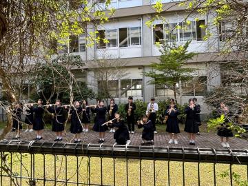 令和7年4月11日(金曜日)と16日(水曜日)の昼休みに、中庭で、新入生を歓迎し、ディープパープルメドレーとフィンガーファイブコレクション(立奏バージョン)を演奏しました。たくさんの方が聴いて頂き、ありがとうございました。