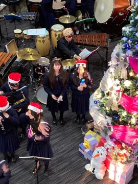 12月18日(水曜日)から20日(金曜日)にパルナソスホールロビーにて、クリスマスロビーコンサートに参加しました。アンサンブルや全体演奏を行いました。大変楽しく演奏できました。