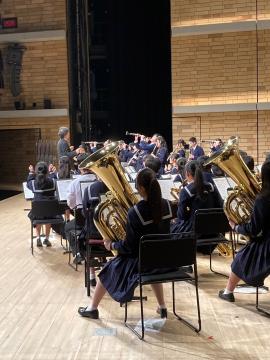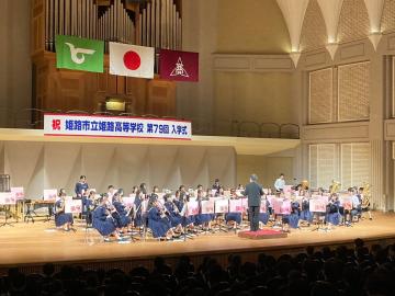 令和6年5月4日(土曜日)に、アクリエひめじ大ホールにて、兵庫県吹奏楽連盟創立90周年記念演奏会が催され、西播地区から淳心学院とともに出演いたしました。記念行事に出演できることはとても栄誉なことでした。情熱大陸セレクションとフィンガーファイブコレクションを演奏しました。また、招待演奏の習志野市立習志野高等学校の演奏を聴くことができました。圧倒され大変刺激を受けました。