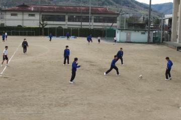後期7年生の体育の授業ではサッカーに取り組んでいます。準備体操の後、今日の練習ではリフティングやボールを複数人で回し相手にボールを触らせないようしたり、コーン間をドリブルで移動しシュートしたりして基本的な動きを学習しました。