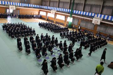 最後の卒業式練習が行われ、9年生が下校したあと、7、8年生によって会場準備が行われました。7年生は会場となる南体育館の周りを、8年生は体育館内の清掃と式場づくりをしました。