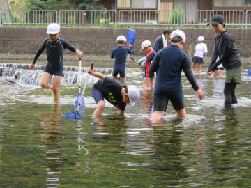 毎年、身近な林田川に住む生き物の調査を行っています。