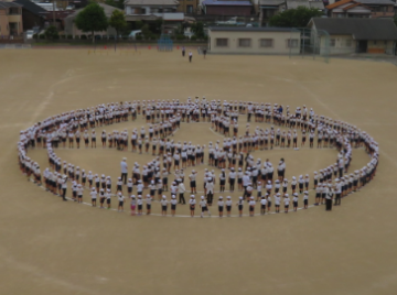 児童の皆は、短い時間の中で、自分の位置に整然と並び、航空写真撮影に臨みました。業者の方の撮影した写真を見ましたが、すばらしい出来栄えでした。完成の写真・動画を披露する時が楽しみです。