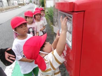 大好きなおじいさんおばあさんに、心を込めてハガキをかき、近くのポストに投函しました。「かわいいハガキ届いたよ」と、後日、おじいさんおばあさんから連絡があり、喜んでいました。
