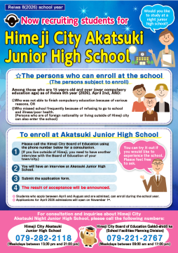 その他、外国籍の人も対象です。また、姫路市外の人も入学できます。
