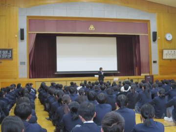 1月7日(水曜日)始業式を終え、いよいよ学年の総まとめである3学期がはじまり ました。3学期は1・2学期に比べると登校日が少ないですが、次のステップにつなげる大切な学期です。生徒たちが思い描いている将来の目標達成に向けた努力を継続してほしいと思います。1年生は「自分で踏み出す夢への第一歩」をテーマに、キャリア体験学習活動をスタートしました。今後、ものづくり体験やトキメキ仕事体験を実施し、自分の将来について考える気持ちを高めていく活動を進めていきます。2年生は「命のボランティア講座」を実施し、互いに思いやり自他ともに命や健康を大切にすることを目的として実施しました。3年生は受験校を決定し、進路決定を目指した活動を実施しています。今後とも、本校の教育活動にご支援ご協力をお願いいたします。