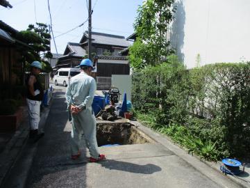 水道管事故の応急修繕や漏水調査を行うほか、配水管布設(替)工事の現場立会、監督、指導などを行っています。