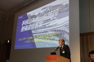 市の幹部職員から、「子どもの学校改革応援事業」、「手柄山スポーツ施設整備運営事業」、「ブランドメッセージ&ロゴ」について、事業説明を行いました。