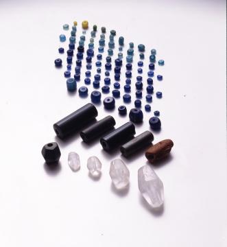 古墳時代後期の双室墳から出土した鉄刀、馬具、耳環、玉、須恵器などで、小動物の足跡がついた珍しい須恵器が見つかっています。